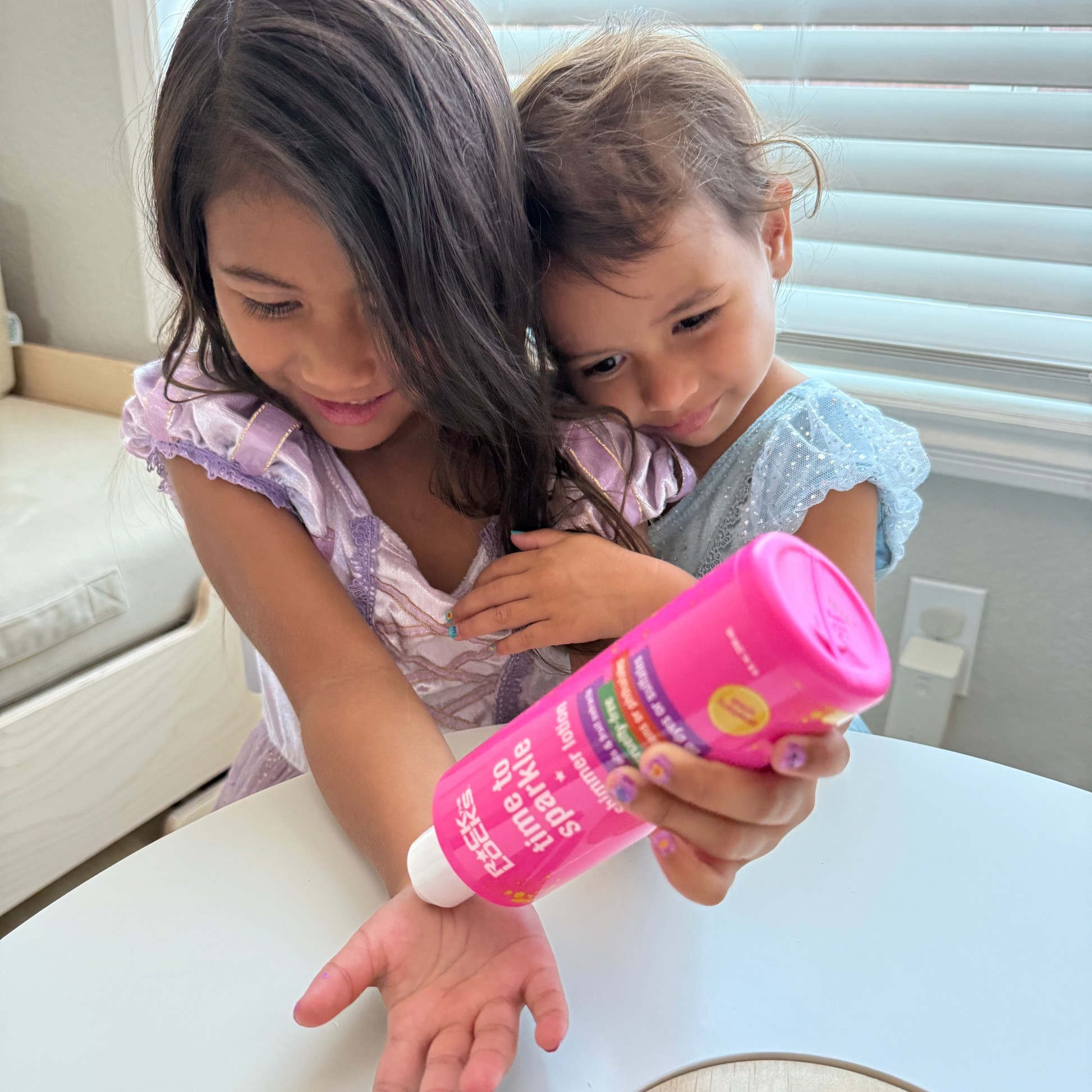 Turn up the shine with Rock the Locks Shimmer Lotion—a super moisturizing, super shimmery must-have for kids who love to glow! Perfect for dress-up fun, dance parties, or any day that needs a little extra dazzle.